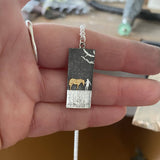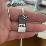 Introducing our exquisite new sterling silver horse necklace. Each horse pendant showcases a beautiful horse alongside their loving owner, capturing the special bond they share. Made with meticulous attention to detail, these necklaces are crafted from sterling silver, ensuring quality and a timeless shine.