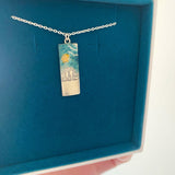 For an extra splash of colour you can add a blue enamel sky to your necklace. Each blue sky is baked onto the piece to form a stunning array of blue, with hints of orange.