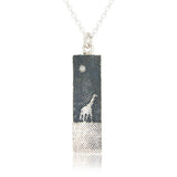 Standing tall as it roams across the horizon beneath the midnight sky. This charming silver giraffe necklace is the perfect gift for giraffe lovers and those that stand tall throughout all of life's endeavours. A necklace to be worn with affection and pride, we hope our handmade silver giraffe necklace helps you to always stand stall. Hallmarked sterling silver.