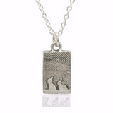 An adorable bunny necklace featuring two bunnies huddled together with their favourite companion as they gaze out from the long green grass. A collection celebrating the love and bond shared between with these adorable fluffy wild animals. An intelligent, affectionate and often cheeky creature that shares a strong connection with their family; content in building memories and sharing moments with their nearest and dearest family and friends.