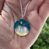 Pricing options include hallmarked sterling silver pendant and 18 inch chain plus variations finishes such as gold vermeil or coloured skies. Stones are not provided in this listing. If you would would like to add stones please get in touch or select the send me a quote option when ordering. Additional chain lengths can also be purchases.