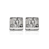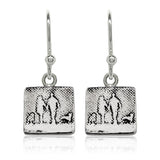 A beautiful reminder of precious moments spent with your four legged friends, these silver couple and dog studs are etched with an image of two people walking hand in hand with their beloved pets.