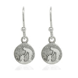 A delightful reminder of cherished memories made with man’s best friend, these little Round Silver Dog Earrings feature an image of a devoted dog owner sharing a loving moment with their loyal pet.