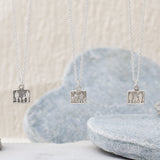 A handmade family necklace celebrating precious moments shared with mum, dad and their children. Take a little walk through the countryside with these beautiful Little Silver Family Necklace. From strolls in the park to escapes in the countryside the intricate etched on this necklace serves as a little reminder of the special memories we spend with our loves ones.