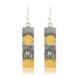 As the golden sun sets in the distance the liquid silver of the sea ripples before the loving couple, capturing a perfect moment of tranquillity and happiness. Keep your partner close to you with this precious keepsake for those magical times. These handmade silver sunset couple earrings, finished with 22ct gold vermeil to highlight the glistening golden colour of the sun and sand, are an ideal gift for sunset lovers.