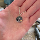 Our sterling silver dog necklaces make the perfect gifts for dog lovers. Providing a delightful reminder of treasured moments spent with man’s best friend, this Walks Under Night's Sky Two Dog Necklace is etched with an image of a devoted owner walking with their faithful dogs.