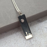 This design is available in oxidised sterling silver or 9ct white gold and 18ct white gold with black rhodium. Chain length measures 18 inches with a 2 inch extension chain fastening at both 16 and 18 inches. Other chain lengths are also available. Comes packaged in an elegant white leather gift box printed with the words Charlotte Lowe…for the moments you cherish. Designed, handmade and hallmarked in Birmingham’s historic Jewellery Quarter.