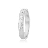 Each Dancing in the Rain Wedding Ring is available in a 4 or 5 mm band. The bands are handmade and hallmarked, in your choice of precious metal, inside our workshop in Birmingham's historic Jewellery Quarter. Handmade in your choice of 9 or 18ct white gold or platinum.