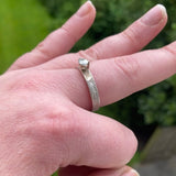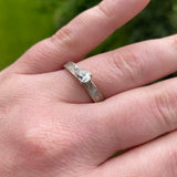 Each Dancing in the Rain Engagement Ring is available in a 4 or 5 mm band. The bands are handmade and hallmarked, in your choice of precious metal, inside our workshop in Birmingham's historic Jewellery Quarter. Handmade in your choice of 9 or 18ct white gold or platinum.