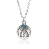 This Little Round Family Pendant Charm with Blue Sky is a precious reminder of meaningful moments spent with your loved ones. Each charm is etched with an image of a family of four walking hand in hand, capturing the love and happiness they share.