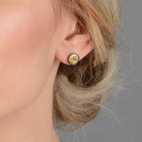A pair of handmade black and gold peacock feather studs, made in sterling silver with 22ct gold vermeil and oxidised silver finish.