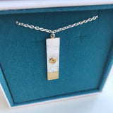 What better place to watch the sunset than with your loved one beside the sea. This handmade silver sunset couple necklace captures a beautiful moment shared by two as they watch the sun set over the shoreline. The sun and sand, inlaid with 22ct gold inlay, to highlight their beautiful golden colour. Hallmarked sterling silver.