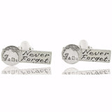 Handmade sterling silver elephant cufflinks engraved with the loving words 'Never Forget'.