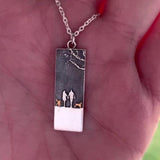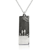 Our sterling silver couple and dog necklace featuring a couple and their two dogs stood beneath the nights sky. The perfect gift for dog lovers to cherish evening walks spend in the company of each other and mans best friend.