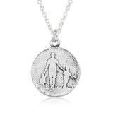 This beautiful Mother of Two Children Necklace is etched with an image of a mother and her two children walking hand in hand, capturing the love and happiness they share.