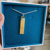 Our footprints in the sand jewellery is designed to evoke memories from your favourite spots beside the sea. Picturing two figures walking together across the beach, leaving behind them a trail of footprints in the sand, each one, the mark of a cherished memory shared. Each footprints in the sand necklace is handmade in sterling silver with the golden sand and footprints detailed with 22ct gold vermeil. Handmade in the heart of Birmingham's historic Jewellery Quarter by Charlotte Lowe Jewellery. Hallmarked sterling silver.
