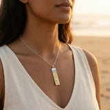A stunning item of sentimental jewellery to treasure those precious moments spent upon the golden sand. This sterling silver Footprints in the Sand Necklace is etched with a beautiful detailed image of two on the beach.