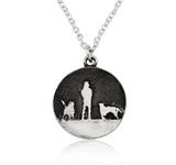 This Walks Under Night's Sky Two Dog Necklace is etched with an image of a devoted owner walking with their faithful dogs; a delightful reminder of treasured moments spent with man’s best friend,