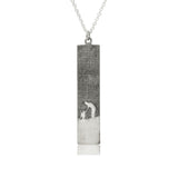 A perfect reminder of those special times spent together, this charming Walk with Me Silver Dog Pendant features an image of a dog owner and their precious companion sharing an affectionate moment.