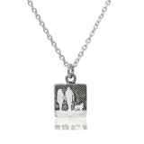 A sterling silver dog pendant celebrating precious moments shared between two people and man's best friend. Inspired by the simple moments in life, each dog pendant is etched with a beautiful image of a couple and their dog walking hand in hand through the countryside.