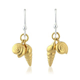Double Shell Drop Earrings, Silver with 22ct Gold Vermeil