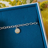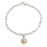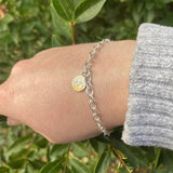 Etched with an intricate image of a family of three walking along the golden sands, this bracelet is a delightful reminder of those precious moments collecting shells with the sand between your toes. Memories made at the beach last a lifetime and this special memento bracelet has been made for you to cherish the joy of those simple times. The shape of the charm represents unity; a circle for the complete happiness your family surrounds you with. The trio walk hand in hand together along the glistening sand, detailed with 22ct gold vermeil.