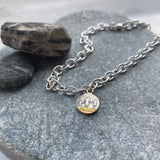 Each bracelet is handmade in sterling silver with oxidised details and 22ct gold vermeil, with a small or medium charm. Each piece comes packaged in a beautiful white leather gift box printed with the words Charlotte Lowe…for the moments you cherish. Designed, handmade and hallmarked in Birmingham’s historic Jewellery Quarter.