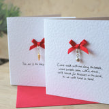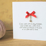 More than just a card, this handcrafted card comes complete with a removable sterling silver shell charm. Choose from our little round silver shell or spiral silver shell. Beneath the charm is a hand written message, which can be personalised with a message of your choice.