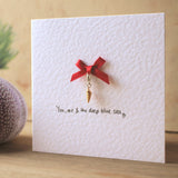 More than just a card, this handcrafted card comes complete with a removable sterling silver shell charm. Choose from our little round silver shell or spiral silver shell. Beneath the charm is a hand written message, which can be personalised with a message of your choice.