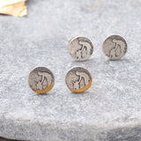 These adorable little dog earrings feature a dog and its owner fusing their beloved best friend. A wonderful item of dog lovers to wear and share with their family and friends. Each pair of studs is handmade in sterling silver and etched with this a little reminder of the special memories share with our four legged friend.